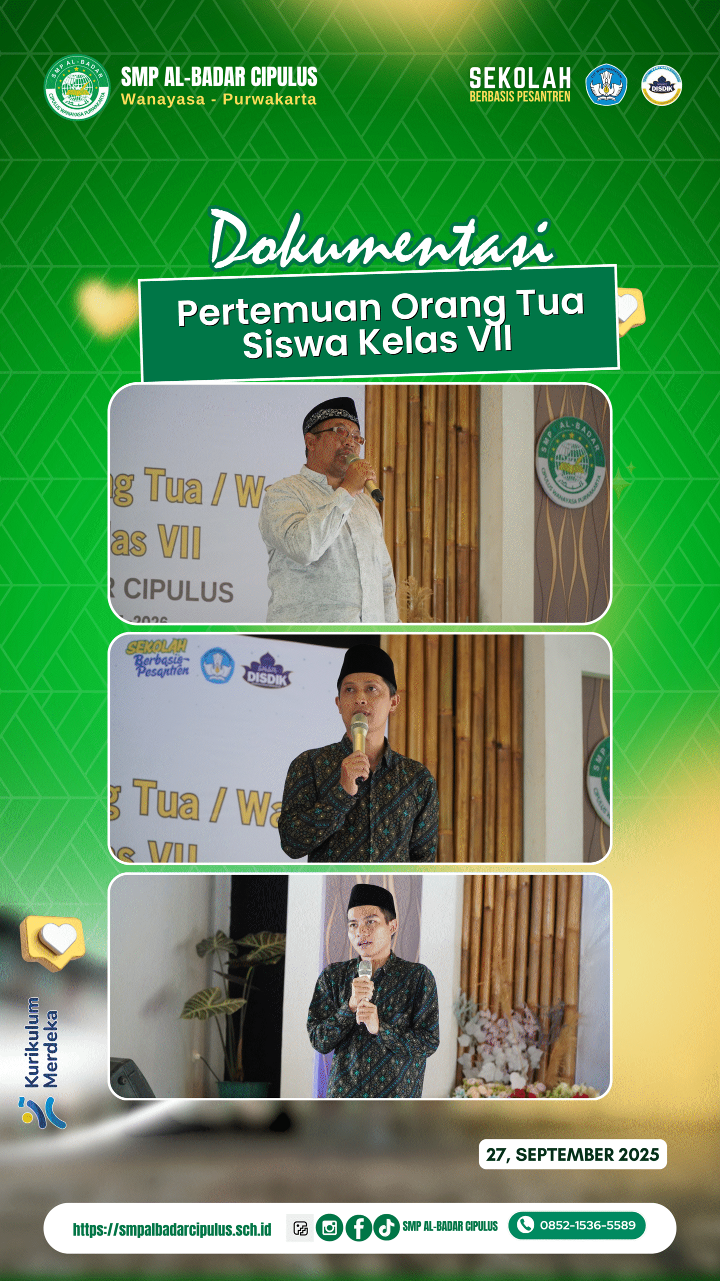 Cipulus, 27 September 2025 – SMP Albadar Cipulus kembali menunjukkan komitmennya dalam membangun sinergi antara sekolah dan keluarga melalui kegiatan Pertemuan dan Silaturahmi Orang Tua Siswa Kelas VII yang berlangsung hangat dan penuh antusiasme pada hari Sabtu, 27 September 2025.